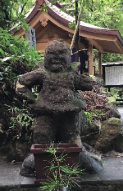 第一鳥居のすぐ後ろに一対の阿吽の仁王像が鎮座しています。明治はじめの廃仏毀釈によって当時神社に所有、保管されていた仏教に関する諸々が壊され、持ち去られました。当神社は特にその被害を受けています。この一対の仁王像は顔や手の一部が壊されてはいますが、廃仏毀釈の難を免れ、現在も鎮座し、神社を守護しています。明治以前の神社が神仏習合であった頃の当社の歴史と信仰を物語る貴重な遺産でもあります。
