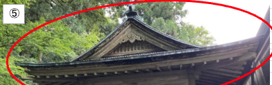 社殿が、本殿(玉垣含む)、幣殿、拝殿、神饌神具所で構成されており、そのうちの本殿、神饌神具所が以下のとおり傷んでいる現状と今後の改修の概要を報告いたします。