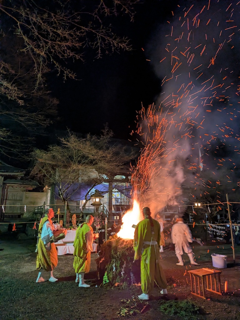 護摩木一本一本に書き記された願意は、炎によって昇華され、諸仏・諸尊のもとへと届けられる。その煙が夜空へ消えていくとき、そこにいた誰もが、自らの祈りが確かに天に通じたことを感じたに違いない。